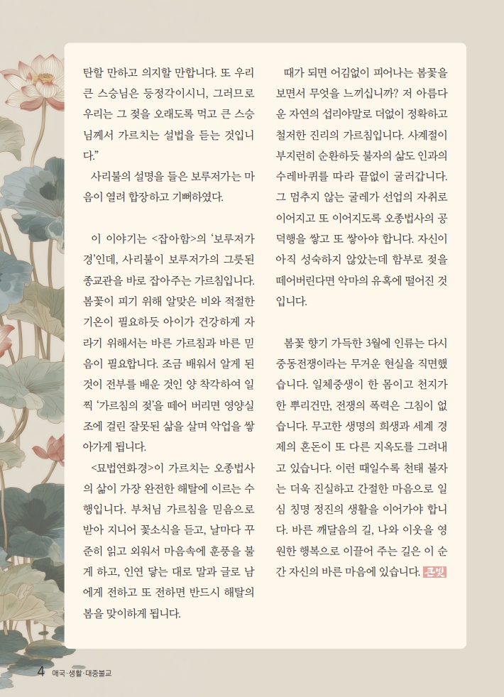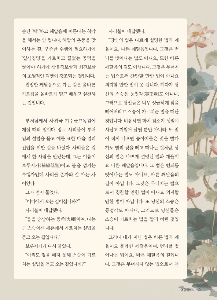 바른 믿음과 수행으로 번뇌 벗어나는 길을 밝혀라 페이지 정보 작성자 대광사 | 조회 6 회 | 작성일 26-03-09 본문 추천0 비추천0 페이스북 트위터 다음글 목록 댓글목록 등록된 댓글이 없습니다.