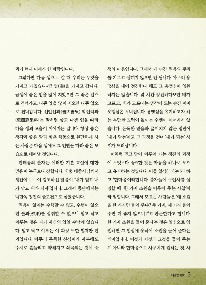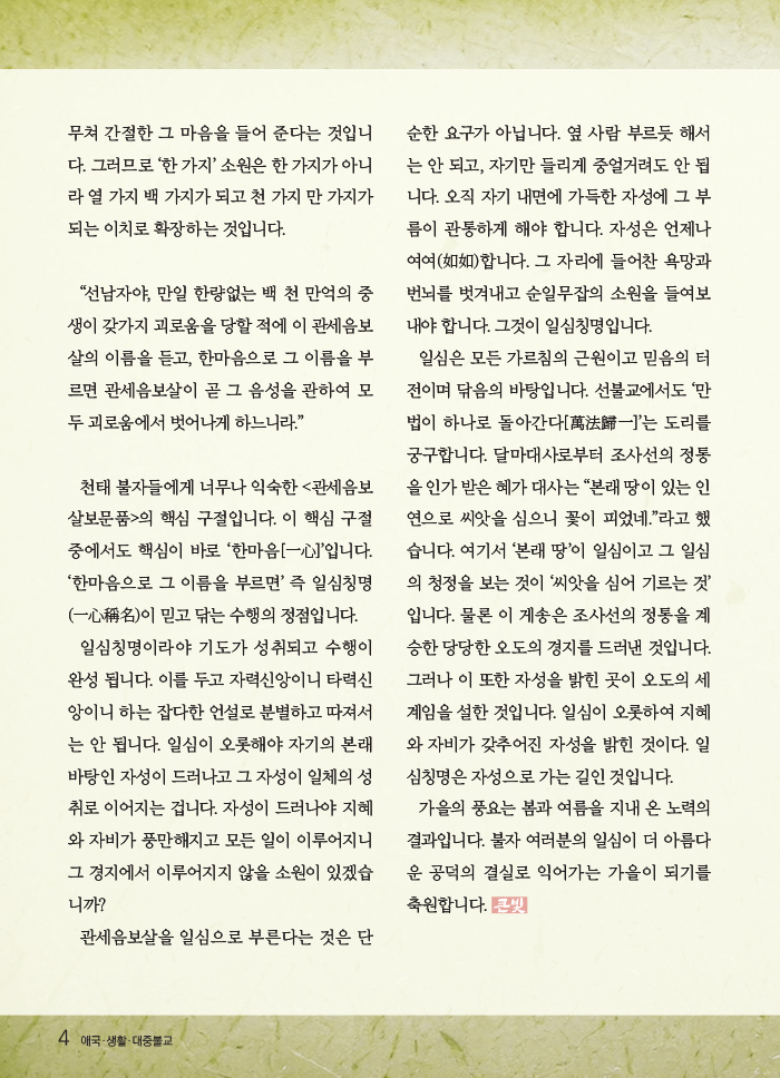 '한마음' 오롯하면 모든 소원이 이뤄진다 페이지 정보 작성자 대광사 | 조회 30 회 | 작성일 25-10-01 본문 추천0 비추천0 페이스북 트위터 다음글 목록 댓글목록 등록된 댓글이 없습니다.