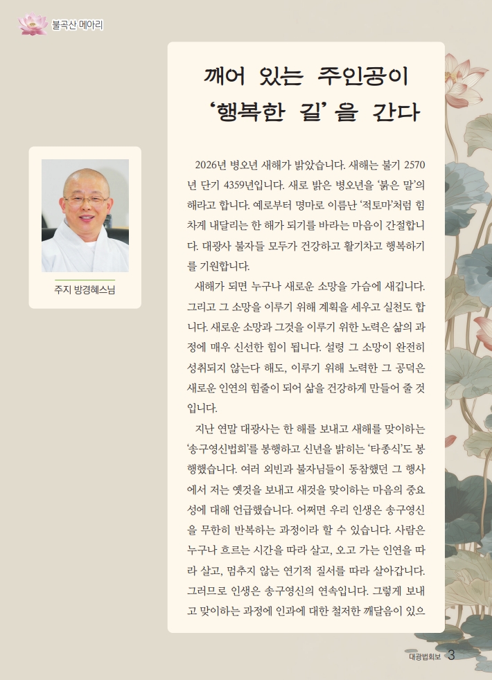 깨어 있는 주인공이 '행복한 길'을 간다 페이지 정보 작성자 대광사 | 조회 27 회 | 작성일 26-02-10 본문 추천0 비추천0 페이스북 트위터 이전글 다음글 목록 댓글목록 등록된 댓글이 없습니다.