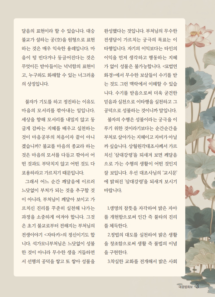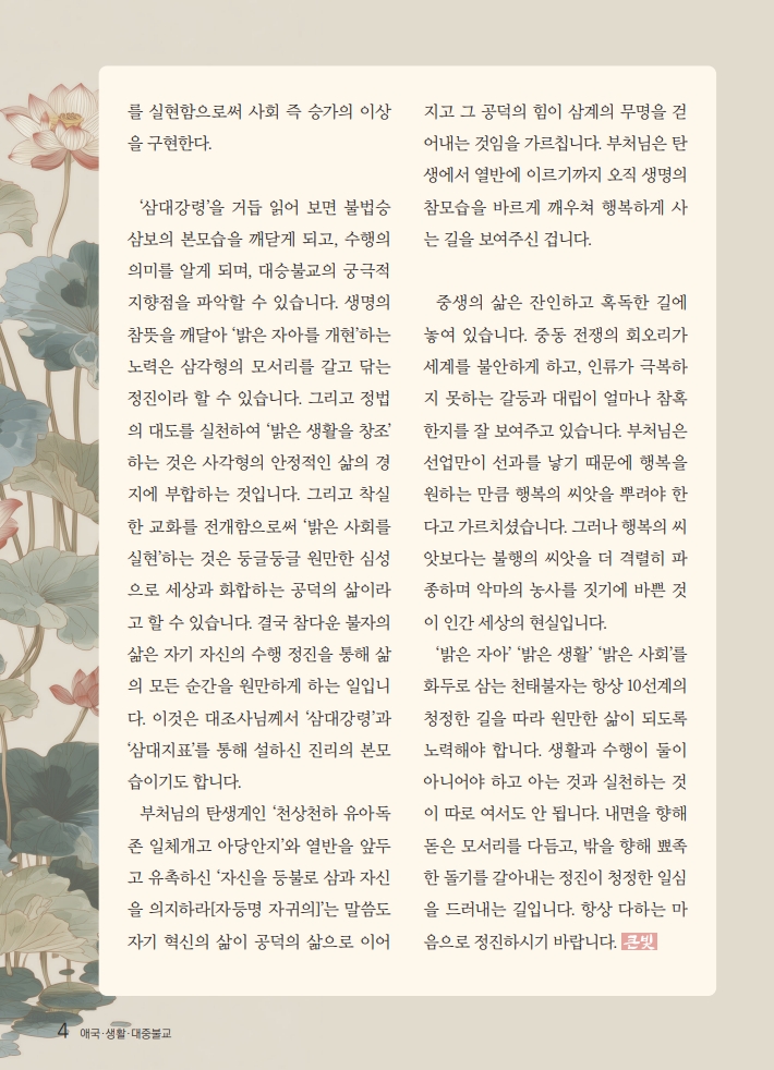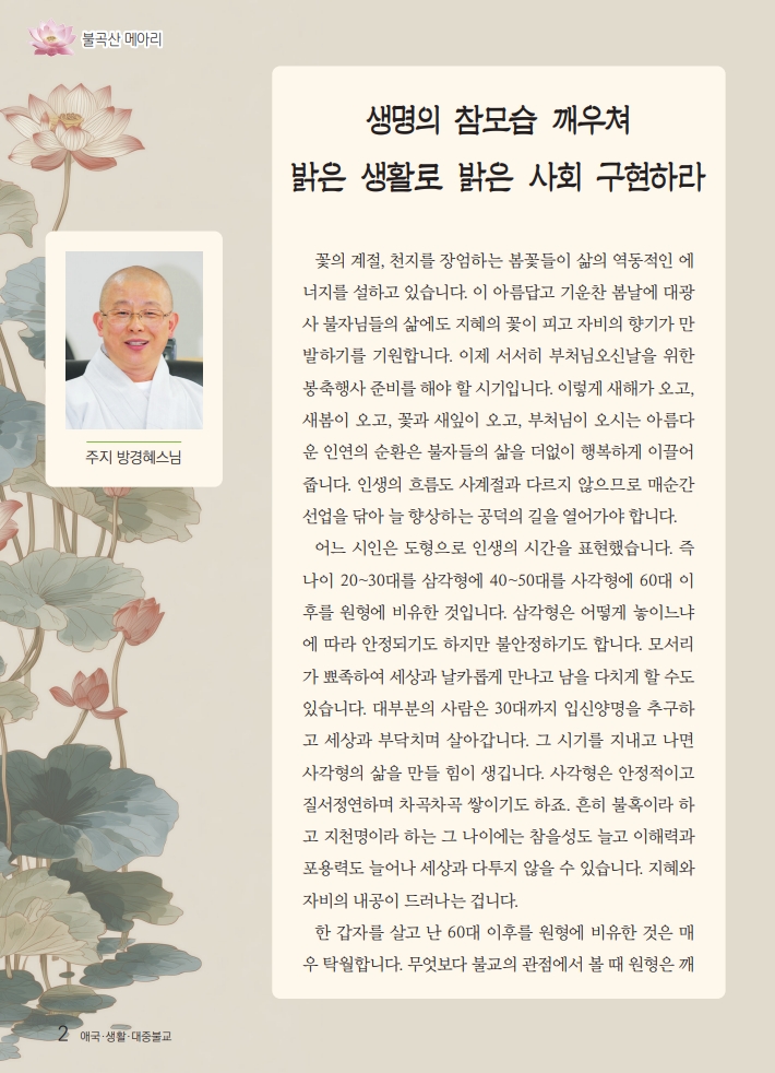 생명의 참모습 깨우쳐 밝은 생활로 밝은 사회 구현하라 페이지 정보 작성자 대광사 | 조회 5 회 | 작성일 26-04-14 본문 추천0 비추천0 페이스북 트위터 다음글 목록 댓글목록 등록된 댓글이 없습니다.