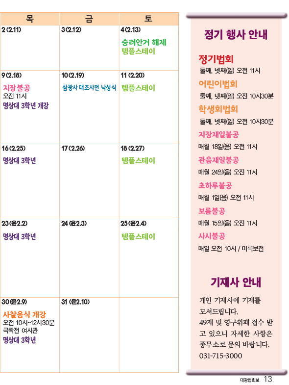계좌번호 : 031-715-3001 / 기업은행 / 대한불교천태종 대광사